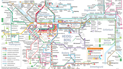Von der Weinstraße bis zur Bergstraße, über die Städte Heidelberg, Ludwigshafen und Mannheim bis hin zu zahlreichen kleineren Gemeinden in der Metropolregion erstreckt sich unser Verkehrsgebiet. Damit Sie hier die Übersicht behalten, haben wir Ihnen eine interaktive Karte und viele Ausschnittspläne zum Herunterladen zusammengestellt.