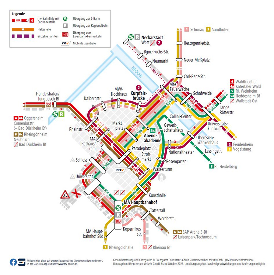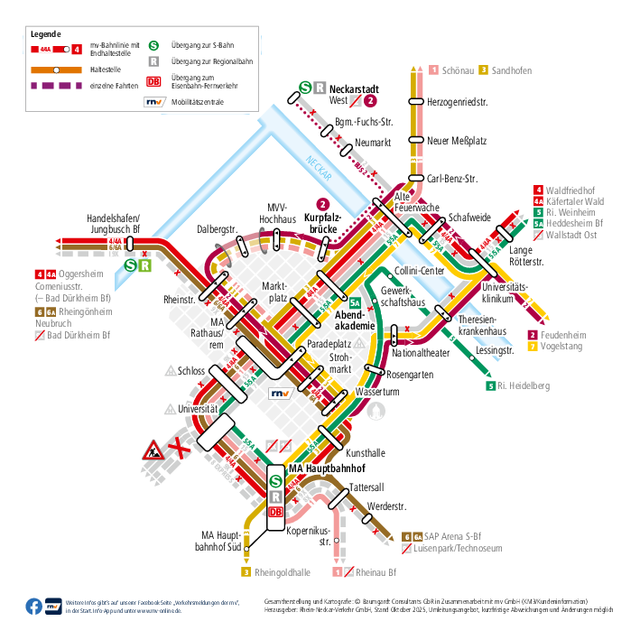 - Schienenersatzverkehr (SEV) zwischen Kurpfalzbrücke und Neckarstadt West