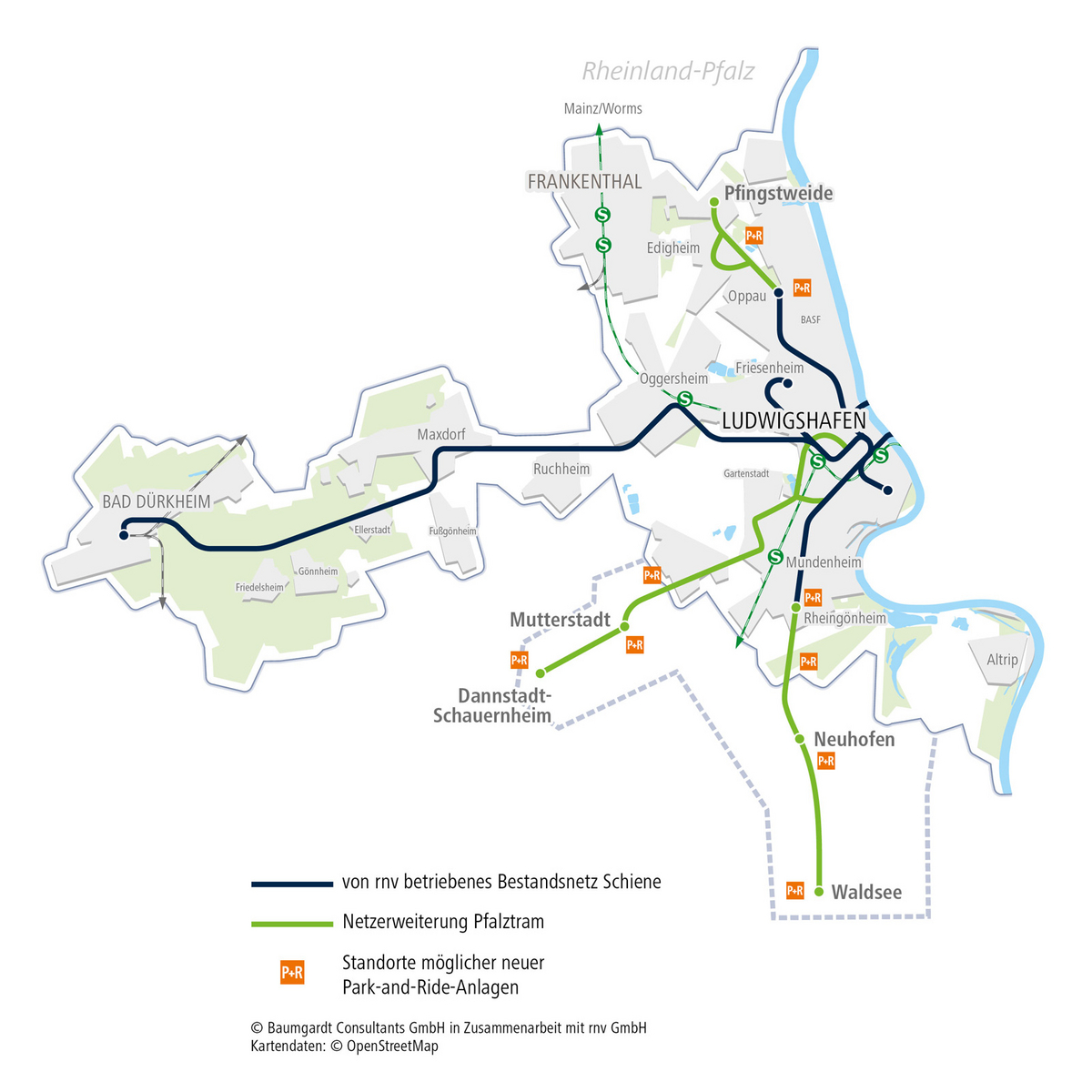 Die Vorderpfalz ist eine Wachstumsregion mit den höchsten Bevölkerungsprognosen in Rheinland-Pfalz und verlangt daher nachhaltige Lösungen für die zunehmenden Verkehrsprobleme. Nach den positiven Ergebnissen einer gemeinsamen Machbarkeitsstudie setzen die regionalen Mobilitätsdienstleister und die Kommunen daher verstärkt auf einen Ausbau des Stadtbahnsystems.